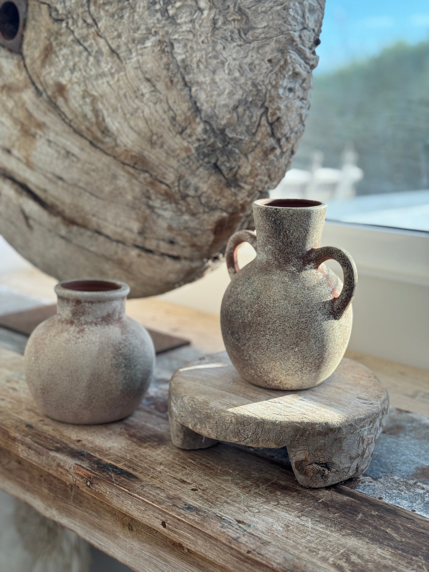 Inspired by ancient Mediterranean amphora forms, the Amara Rustic Twin-Handle Pot brings timeless charm to any coastal or earthy interior. Its weathered stone texture and rounded silhouette give a beautiful aged character, while the dual handles add sculptural balance. Style it solo on a console or fill it with dried botanicals for an effortless coastal statement.