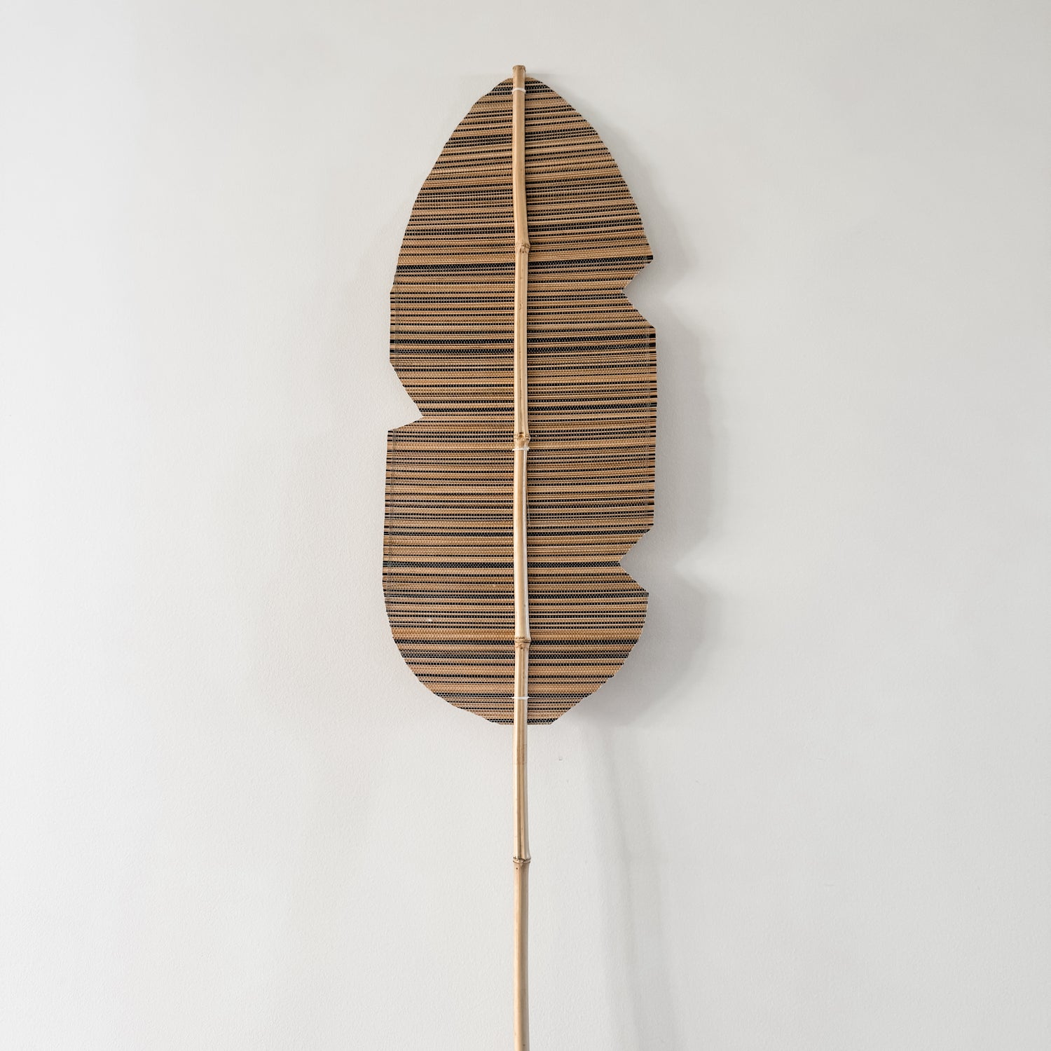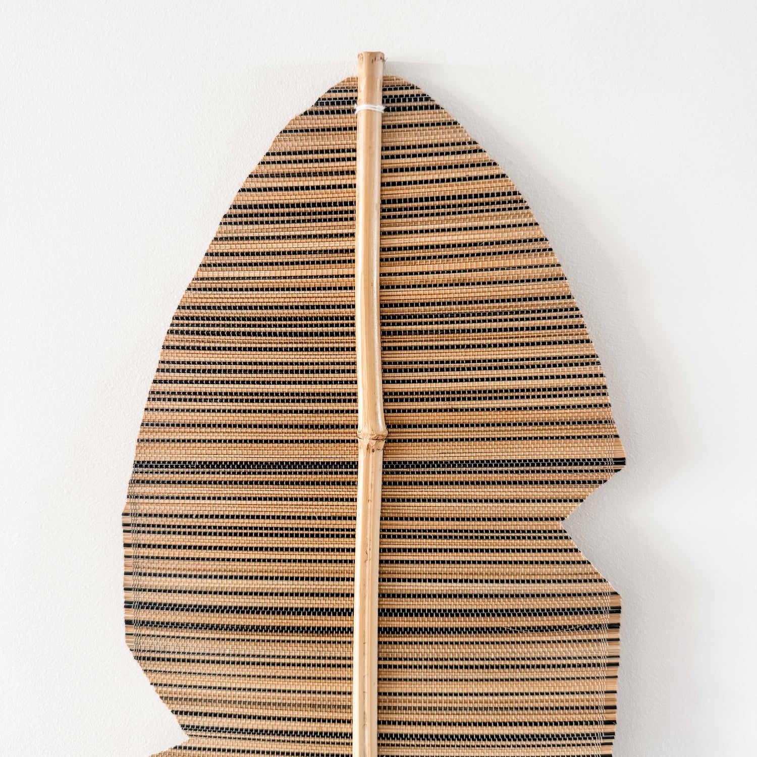 - Handcrafted rattan leaf fan on natural bamboo stem
