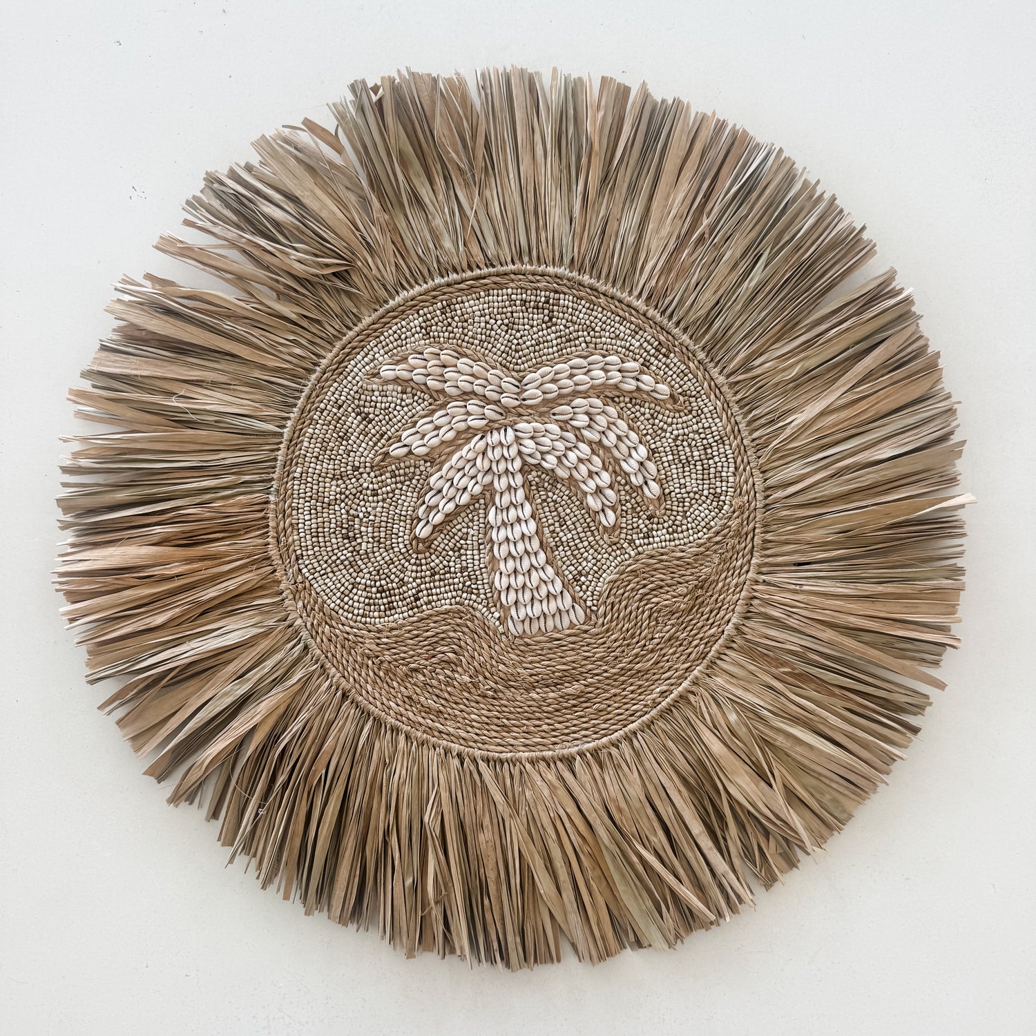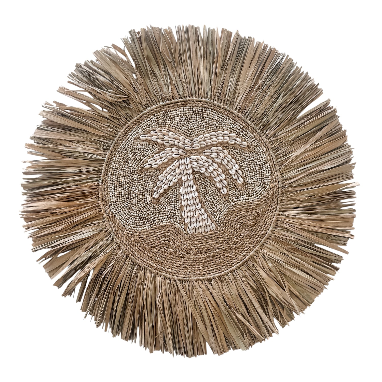 Our Bora Bora Natural Palm Tree Raffia & Shell Wall Hanging captures tropical island beauty in earthy tones. With its hand-crafted shell palm design set against a natural raffia base, it’s an authentic, eye-catching décor piece for relaxed, beachy interiors.