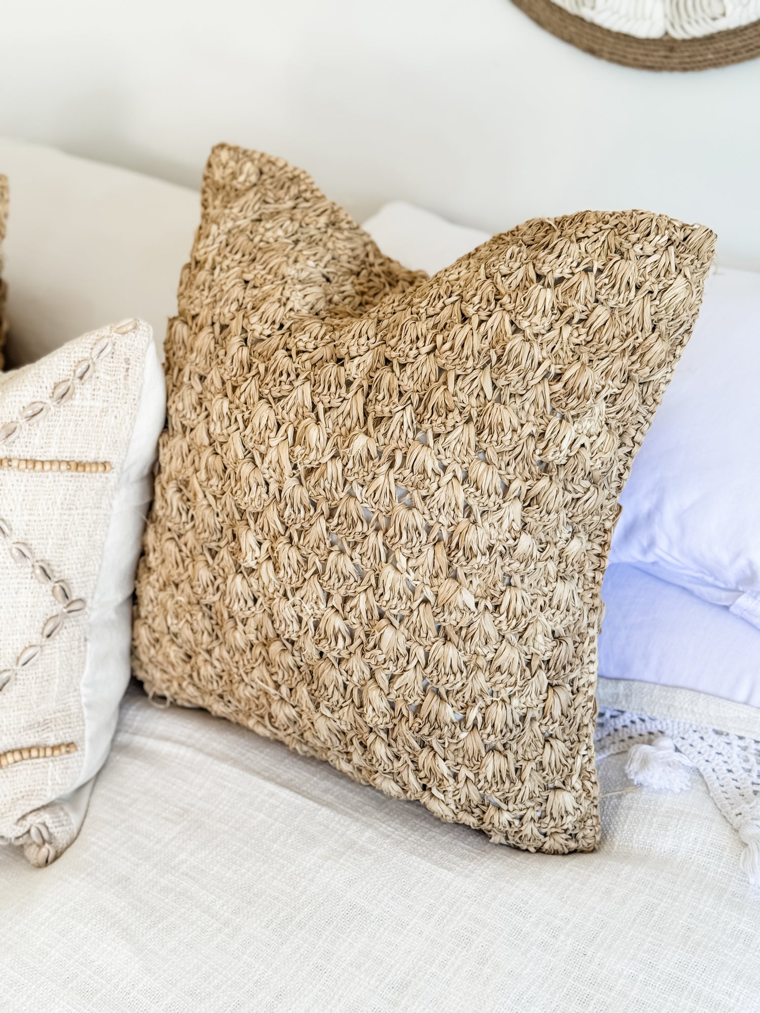 Island luxe... add some gorgeous texture and tropical vibes to your home with our Raffia Scallop Cushion Covers. A great accessory in the bedroom, living space or even an outdoor setting. These are a gorgeous coastal or tribal accent with an organic earthy feel.