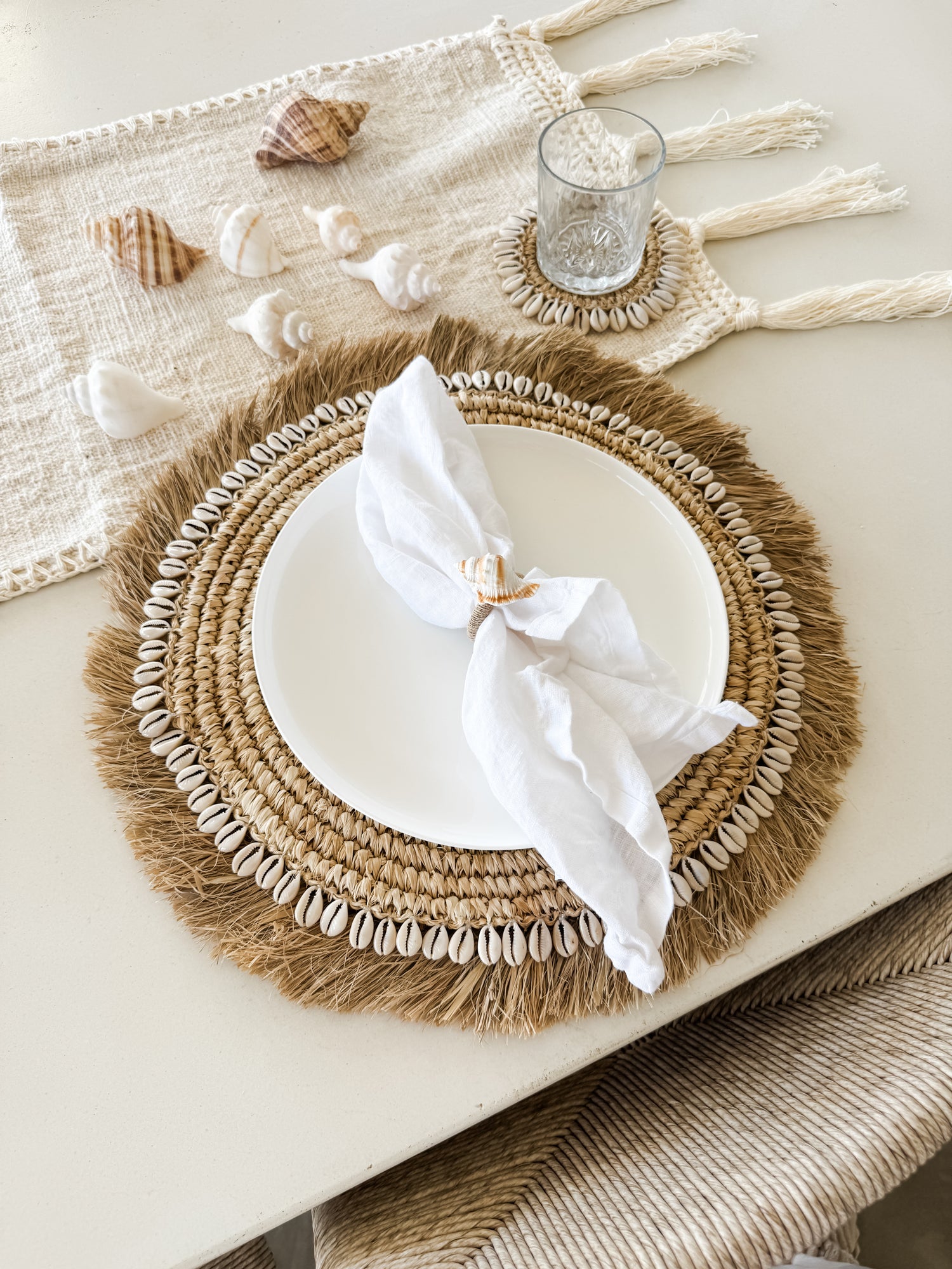 Hand-crafted with natural rope detailing and finished with beautifully detailed marine accents, this set of 4 napkin rings effortlessly blends boho coastal style with functional charm. Ideal for dinner parties, holiday gatherings, weddings, or simply elevating everyday dining, they add a breezy seaside feel to your table.
