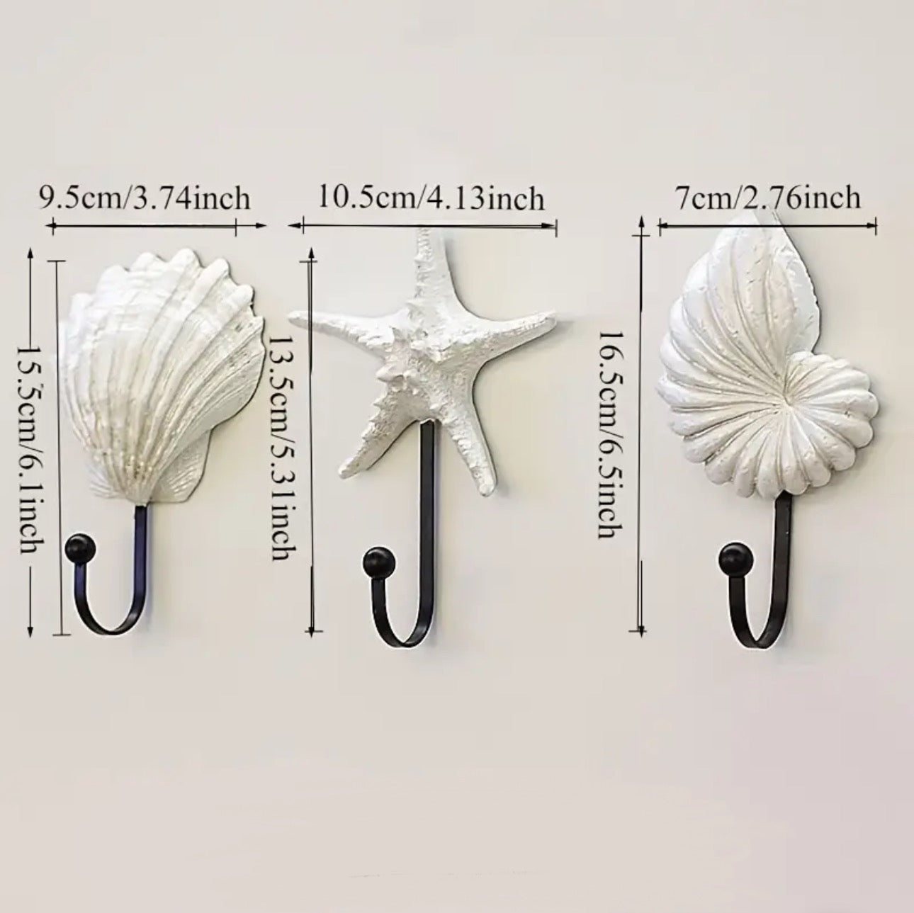 - Starfish Hook: 10.5 cm W × 13.5 cm H