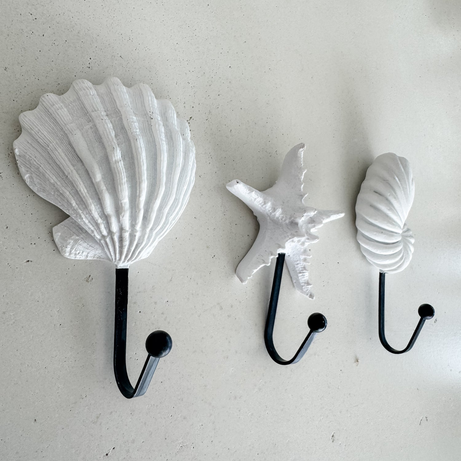 Perfect for hanging lightweight towels, jewellery, hats or décor accents, these hooks instantly elevate any wall — from entryways and bathrooms to beach-inspired bedrooms and children’s spaces. Their hand-cast resin design means each piece may show slight texture or variation, adding to their artisanal feel.