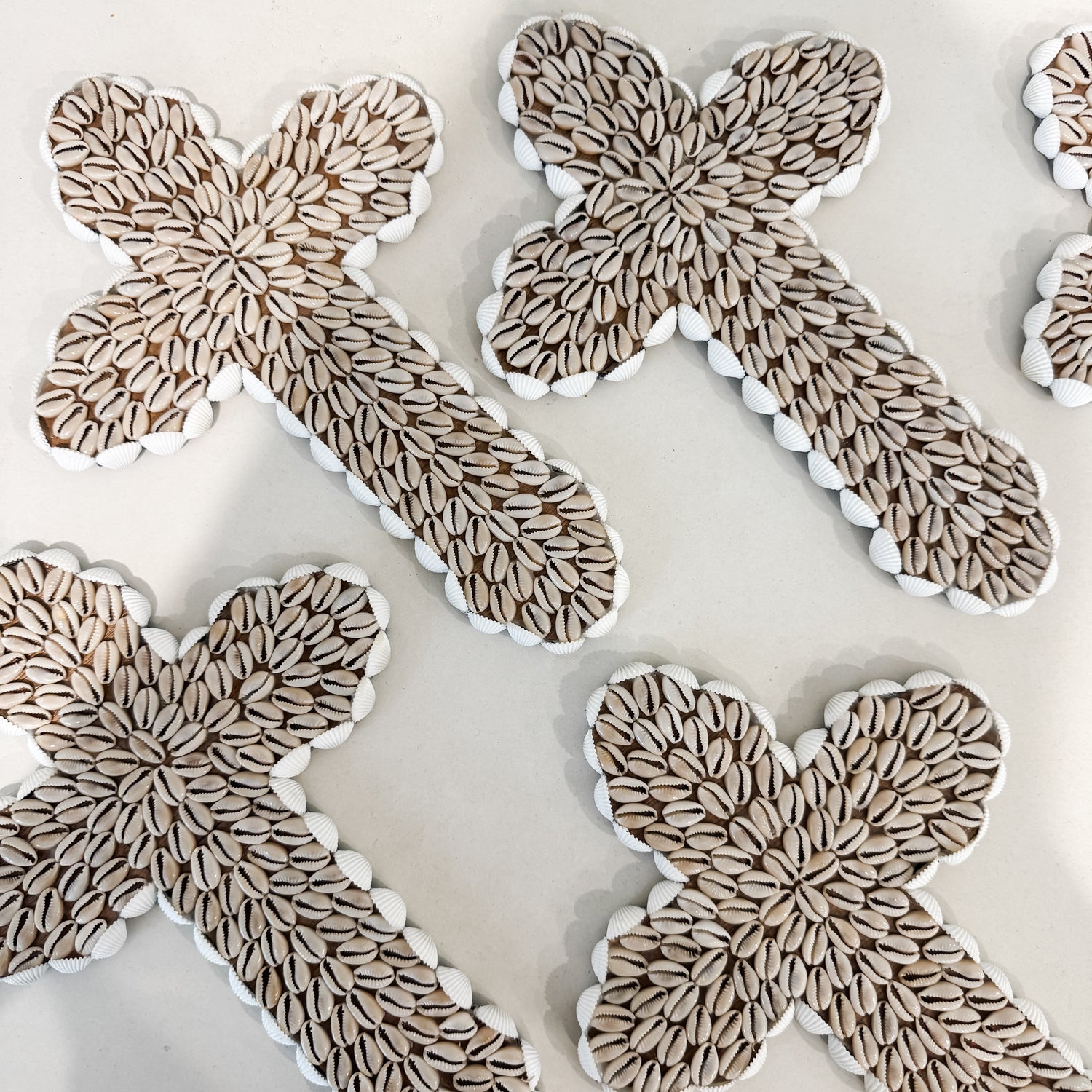 Cowrie Shell Cross Wall Hanging – Coastal Handmade Décor
