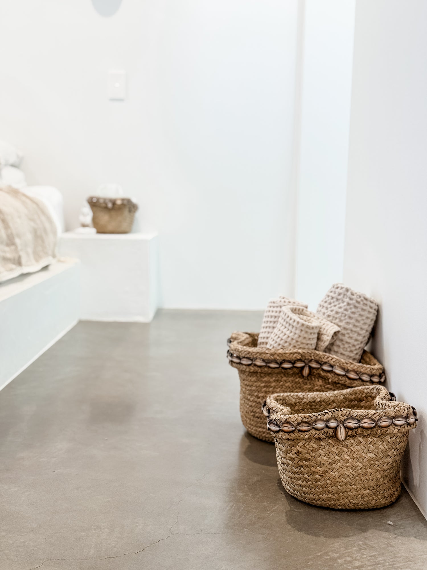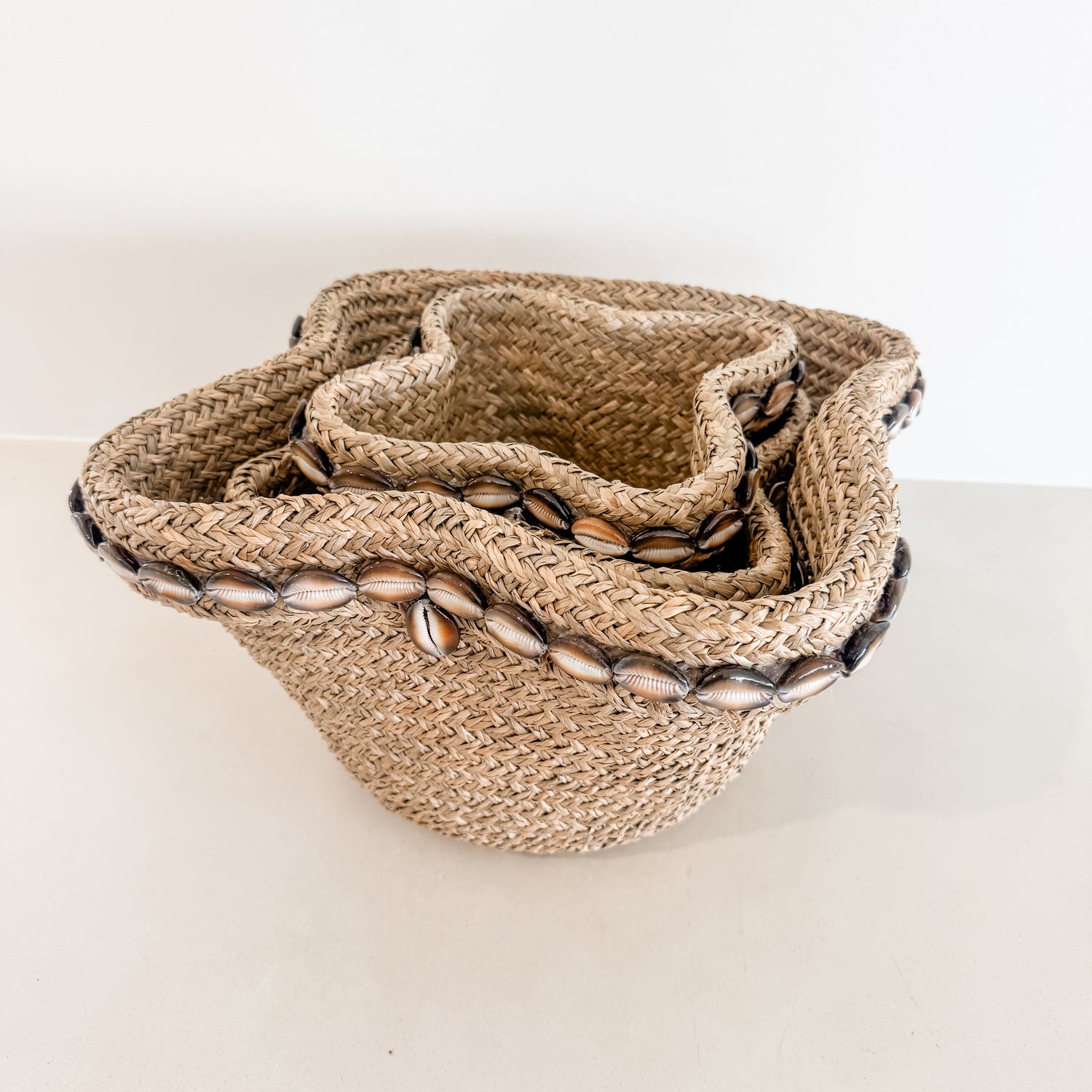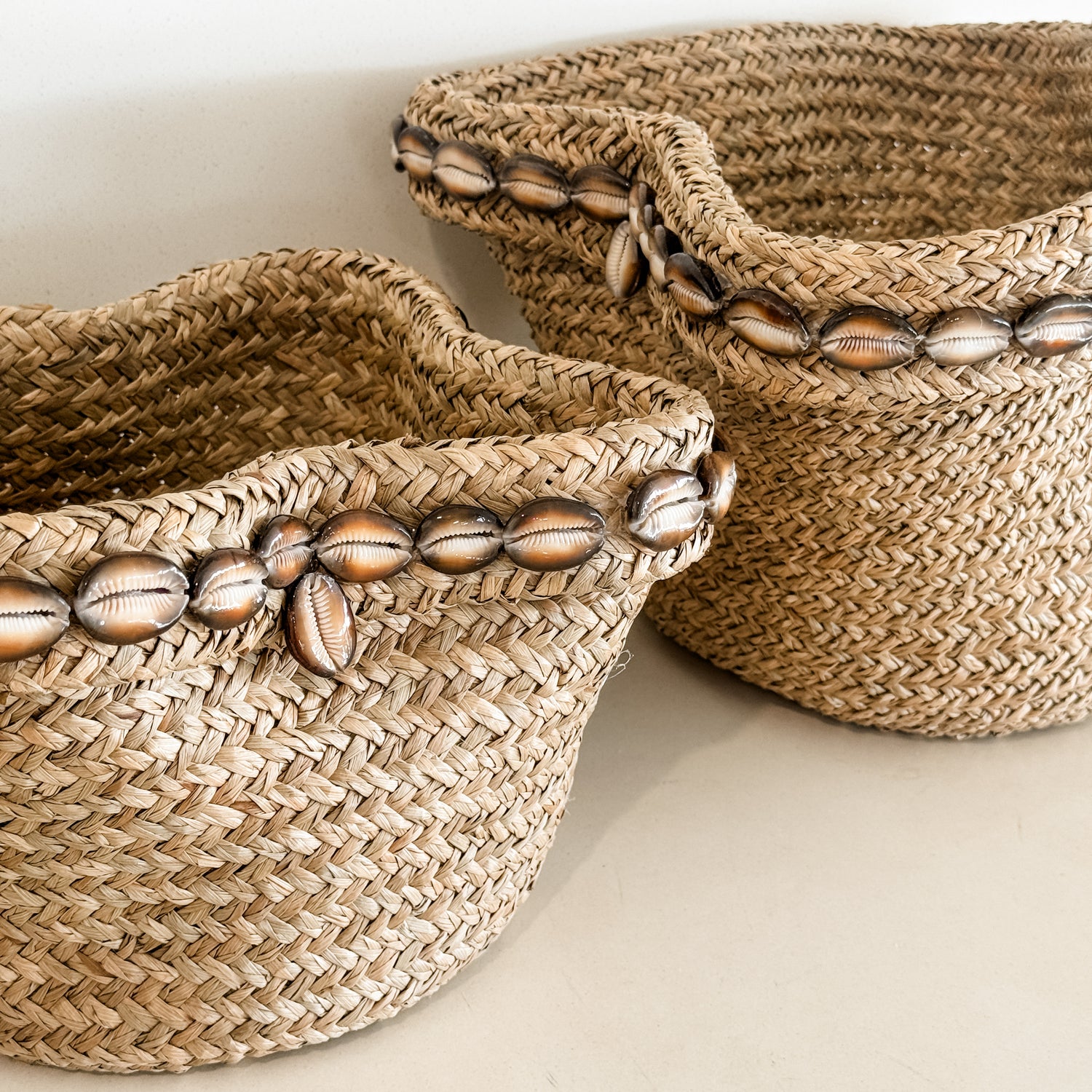 Bring the relaxed beauty of the coast into your home with our Cowrie Shore Baskets. Lovingly handwoven from natural seagrass and finished with a trim of genuine cowrie shells, each basket captures the essence of seaside living.