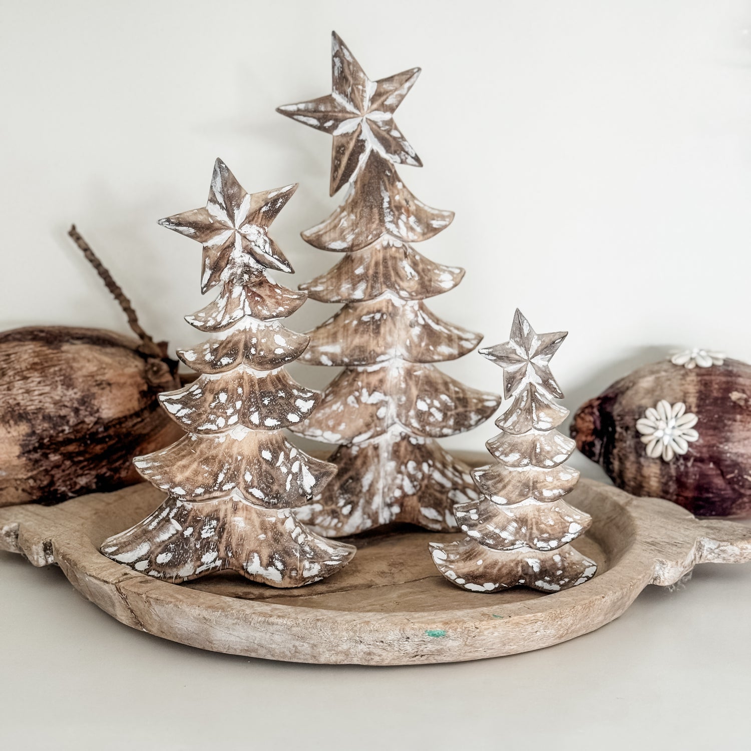 For a warm, rustic-coastal Christmas look, our Driftwood Snow Tree Trio is the perfect choice.