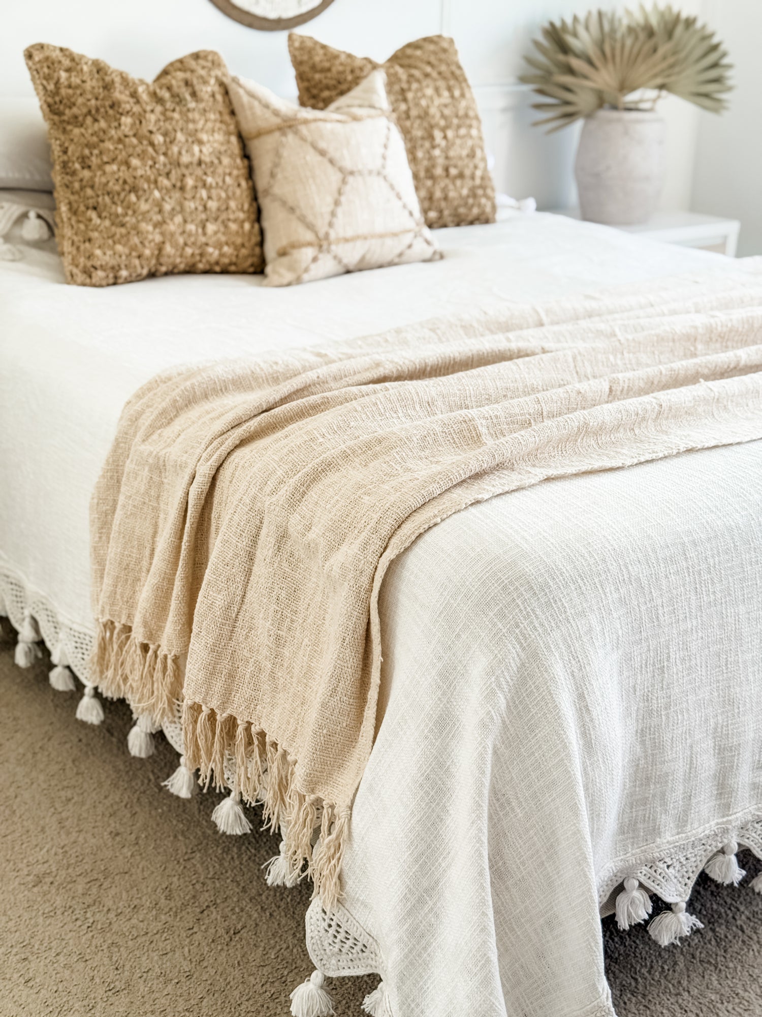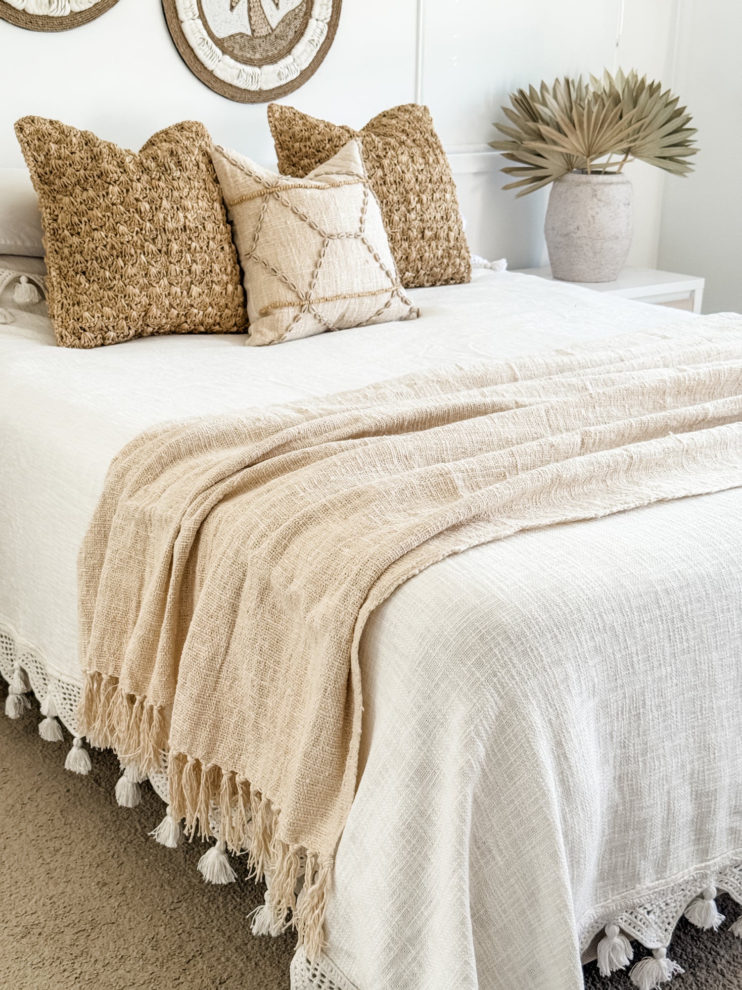 Our Essential Raw Throws are the perfect Coastal Boho accessory. Made from a slub fabric with fringing along two edges. They add a beautiful organic touch to any space with their beautiful raw texture.