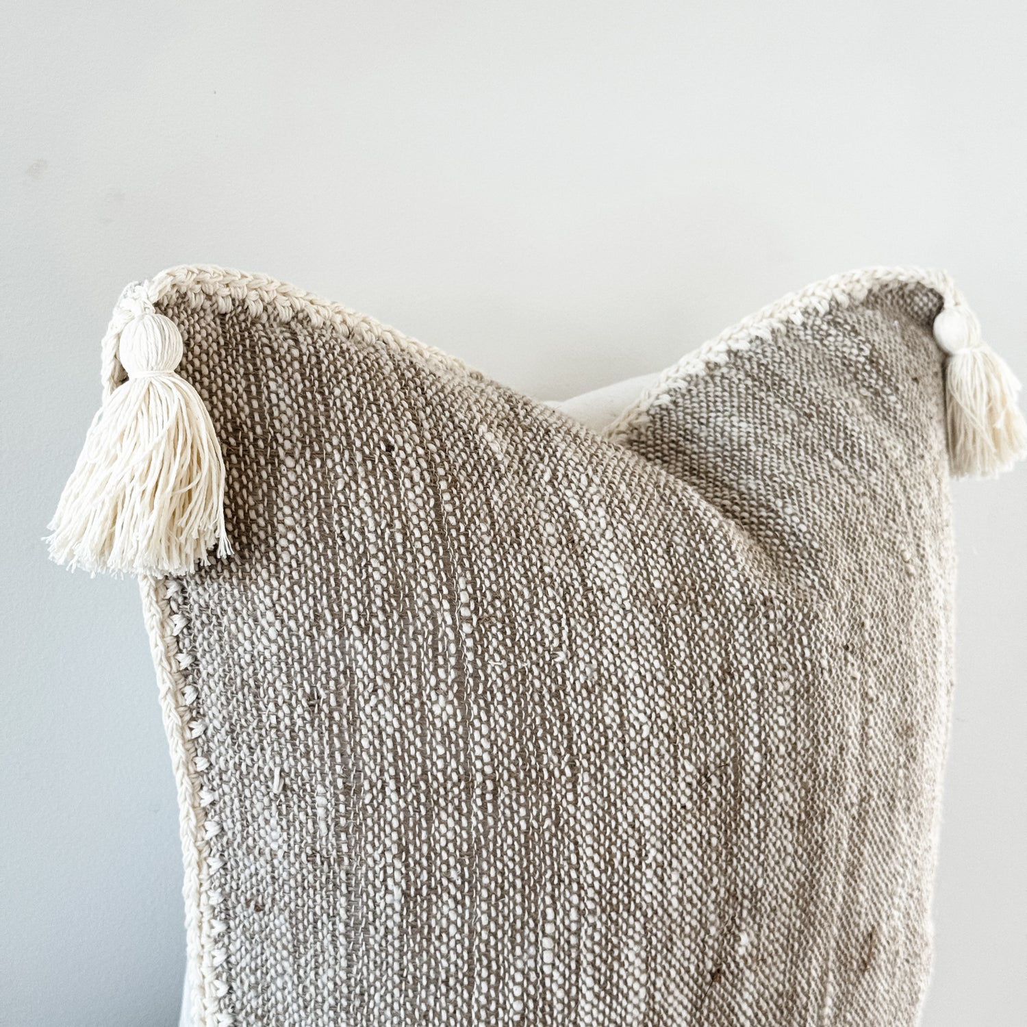 Bring texture and warmth to your space with our Husk Tassel Cushion, crafted from a beautifully woven natural cotton-jute blend. Its neutral stone hue and hand-finished tassels create an effortless coastal charm, perfect for layering across your bed or sofa.