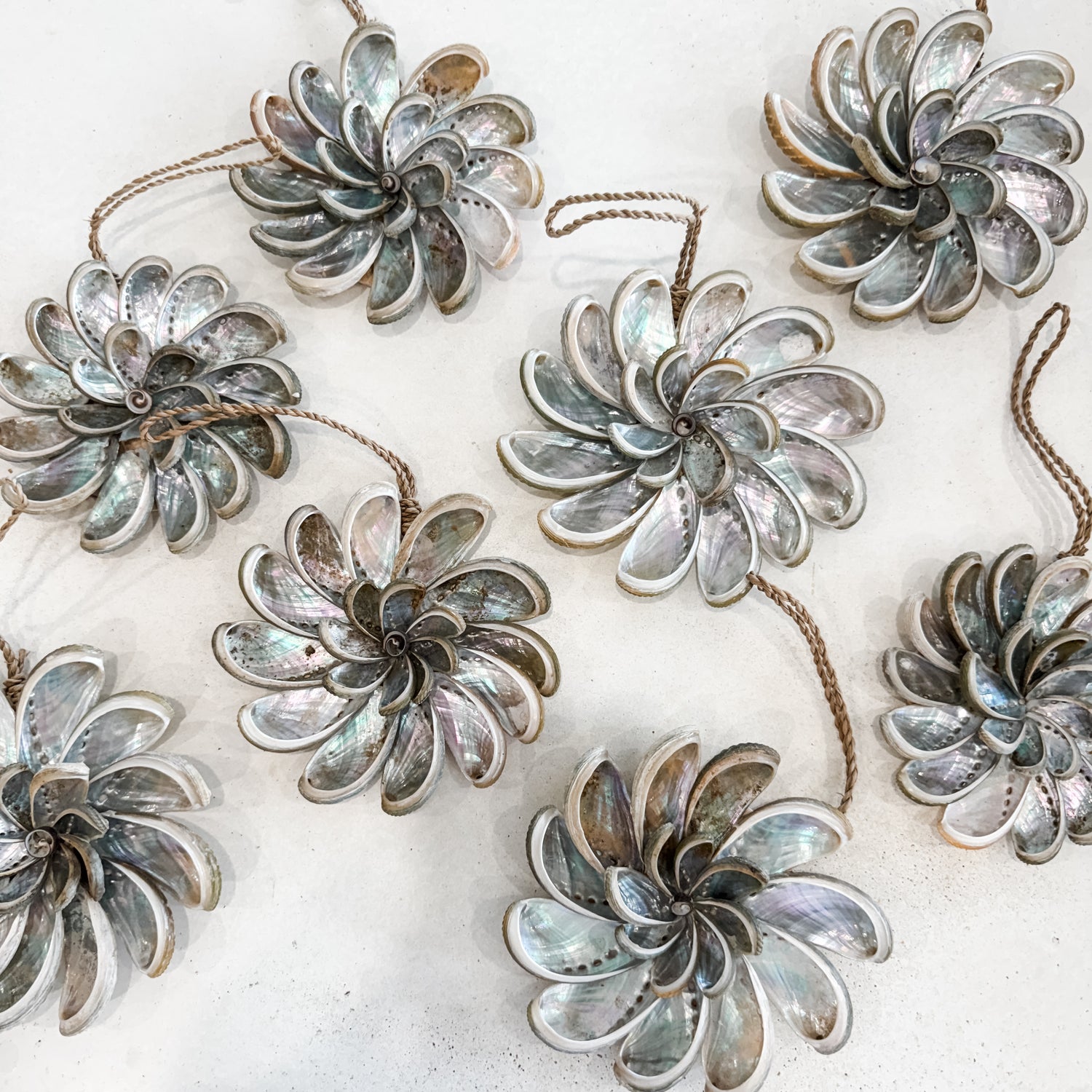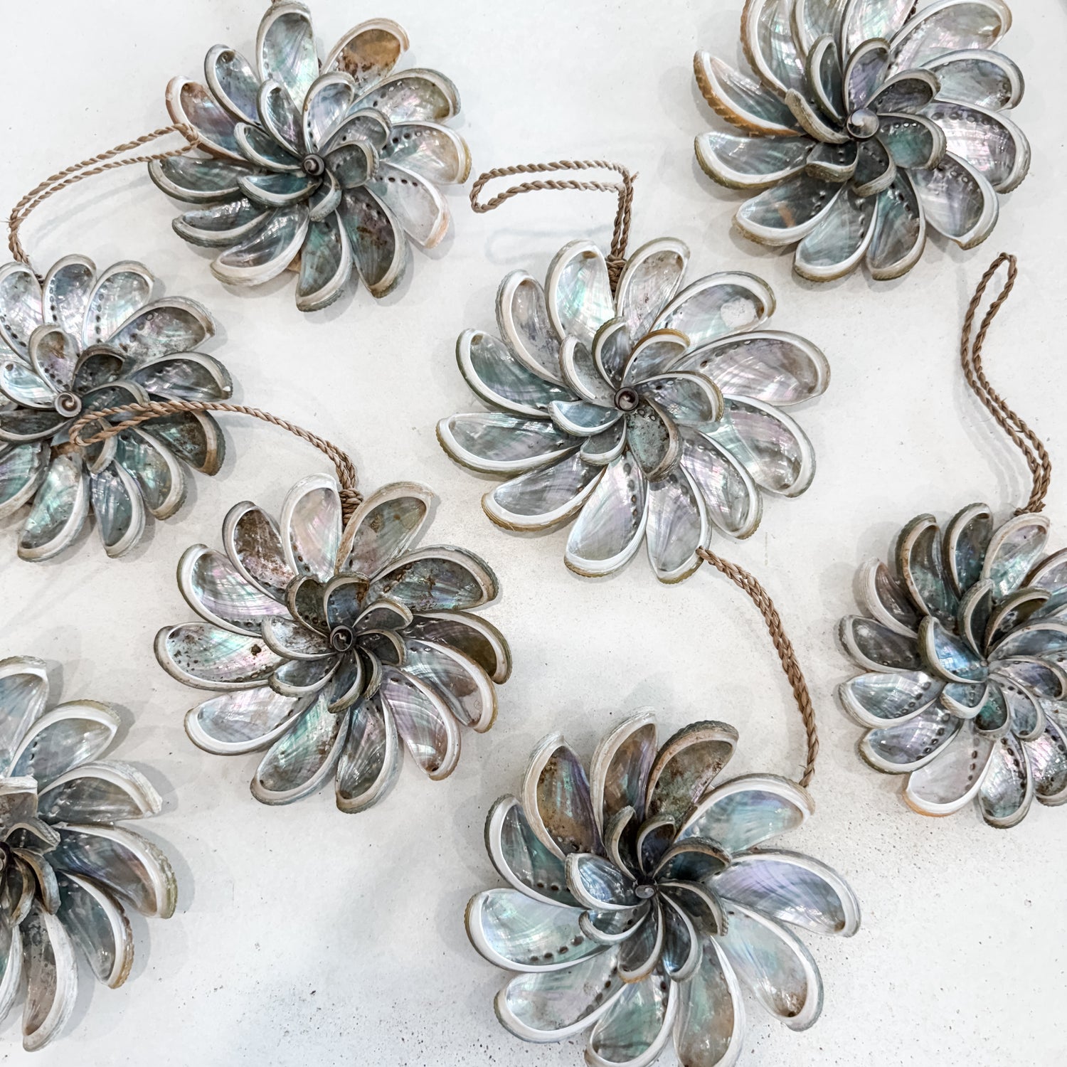 Bring a touch of coastal beauty into your home with our Natural Abalone Blossom Wall Hanging. Handcrafted from genuine abalone shells, each piece blooms into a stunning flower design that shimmers with natural iridescence. Measuring approximately 16cm in diameter, these wall hangings celebrate the raw beauty of the ocean—no two are ever the same.