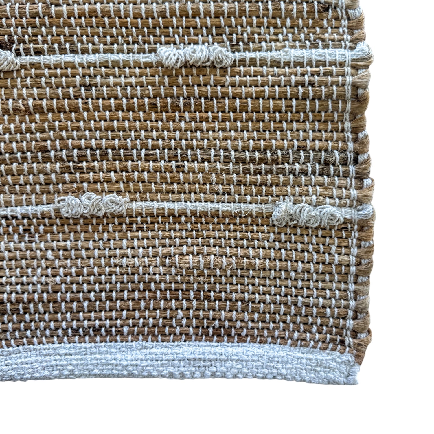 Crafted from a durable blend of natural jute and soft cotton, the Opollo features an organic weave with subtle white detailing and raised cotton knots that add depth and artisanal charm. Its neutral tones make it incredibly versatile, pairing perfectly with white ceramics, coastal décor, earthy linens, or festive tablescapes.