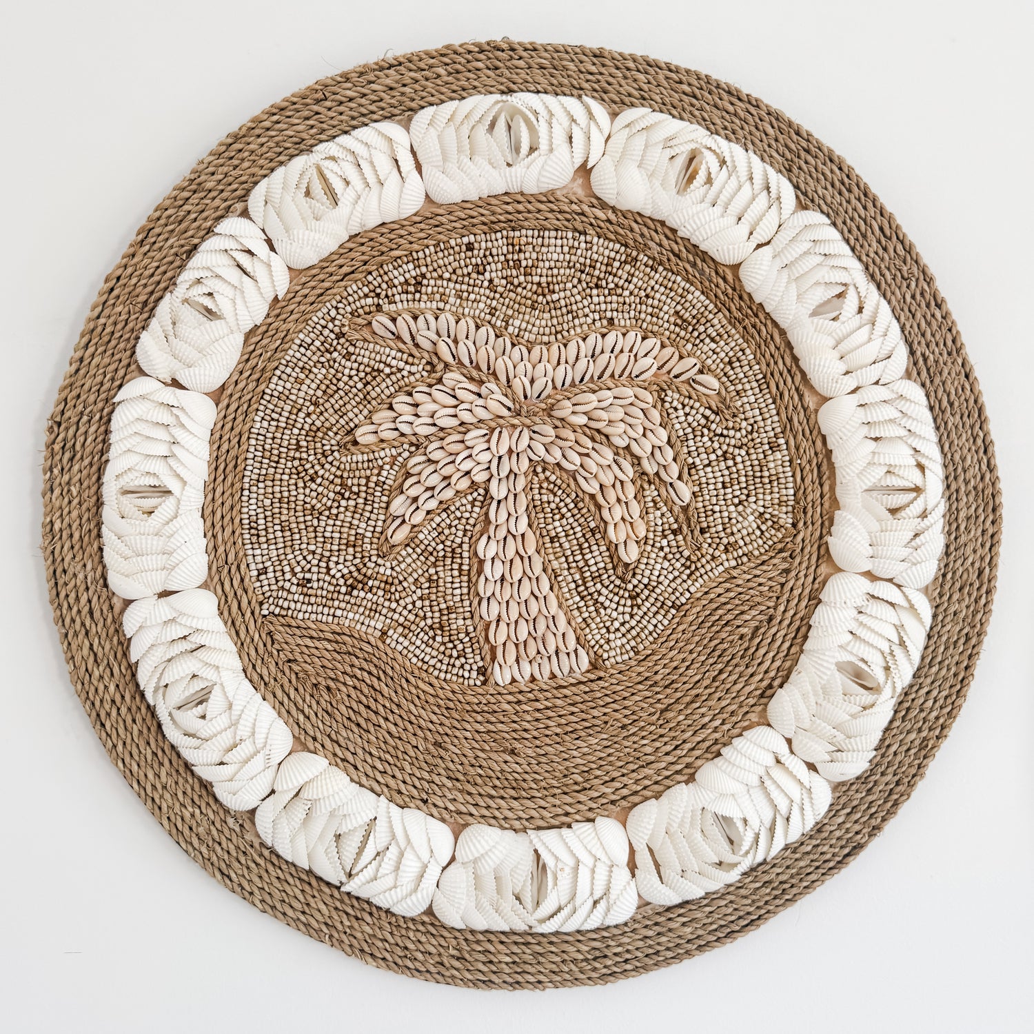 Add a touch of island serenity to your home with our Palm Tree Shell Wall Hanging – Natural Sand. Handcrafted with intricate shellwork, this round 50cm wall art features a palm tree design set against a warm sand-toned background, framed with layers of natural seagrass and white shells. Perfect for bringing beachy vibes to living rooms, bedrooms, or entryways, this piece blends coastal charm with artisanal craftsmanship.