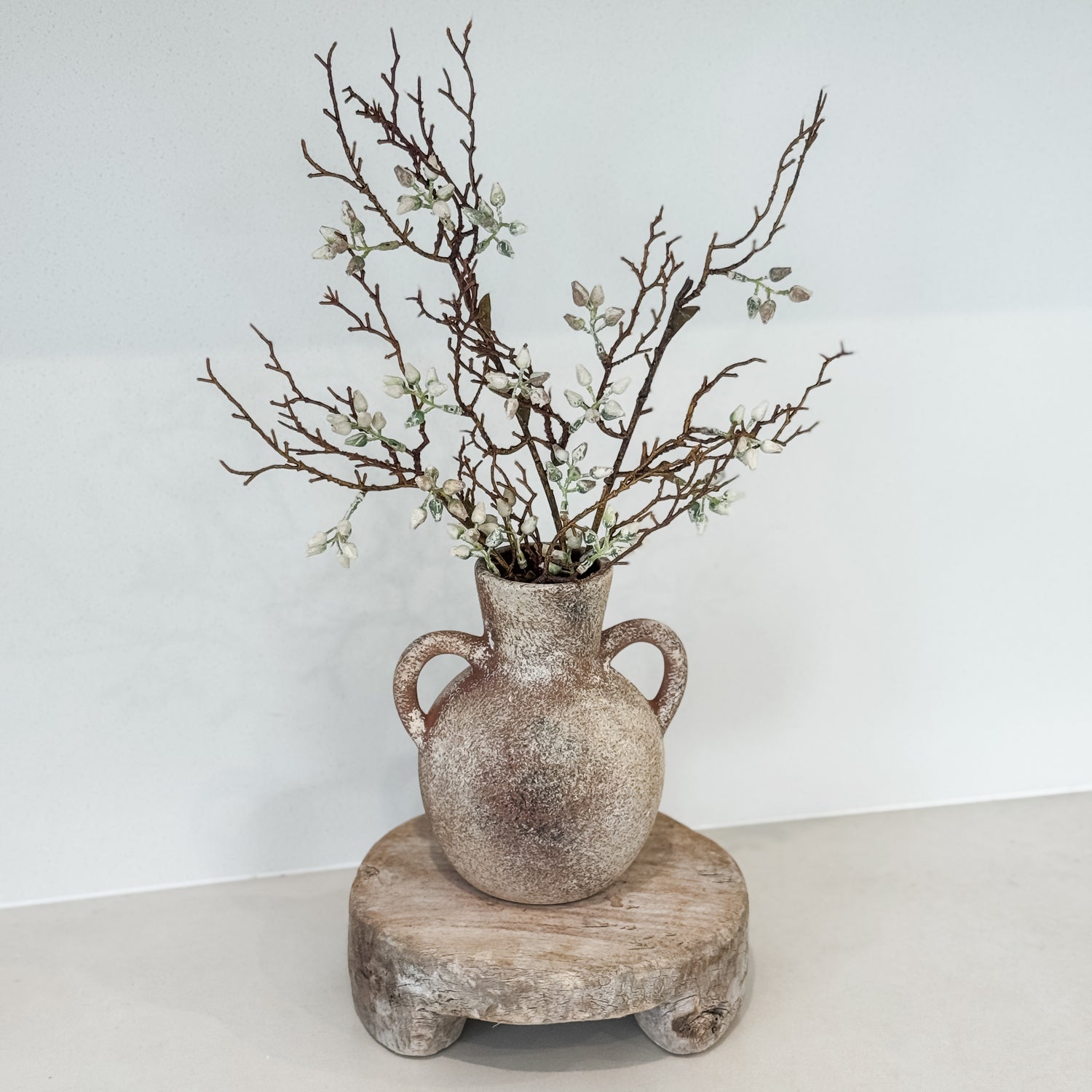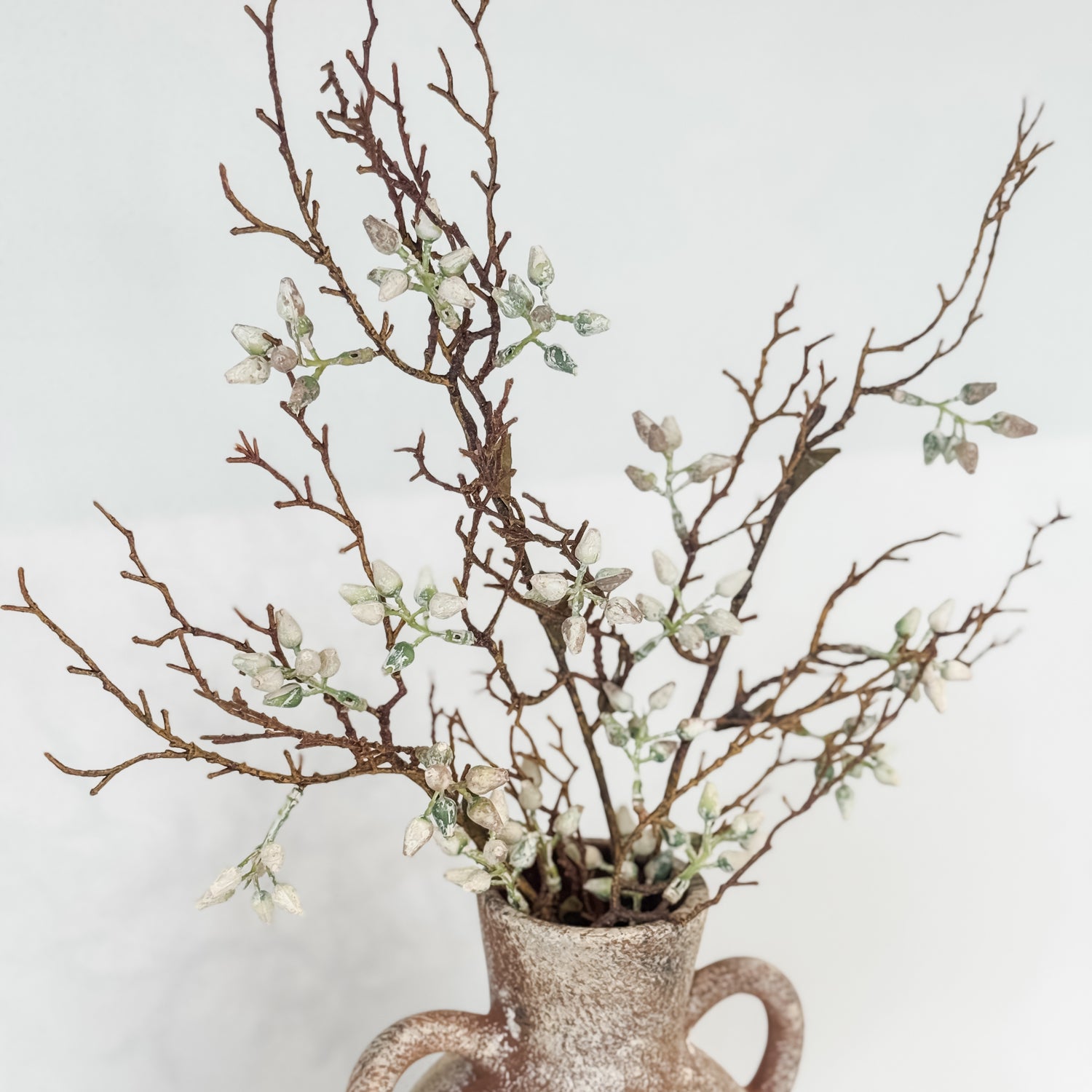 Bring soft, organic texture into your home with our Sandalwood Branch in Milky White. These beautifully detailed faux branches feature delicate buds and rustic brown stems, creating a natural, coastal-luxe look without the maintenance of real foliage.